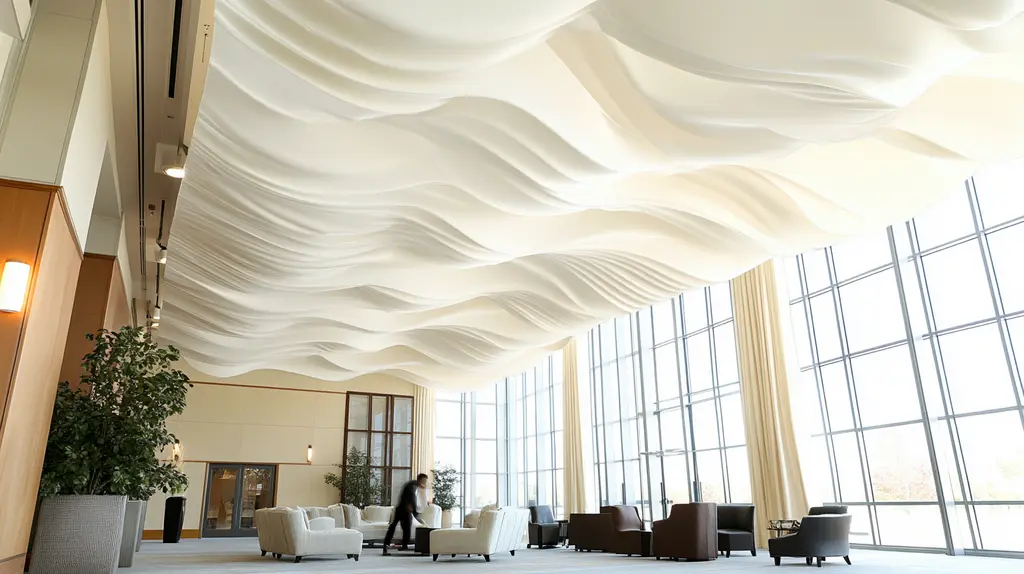 - Escritórios: Utilizado para melhorar a acústica e criar um ambiente mais confortável para o trabalho, o tecido de parede também pode ser combinado com arte e design para inspirar a criatividade.