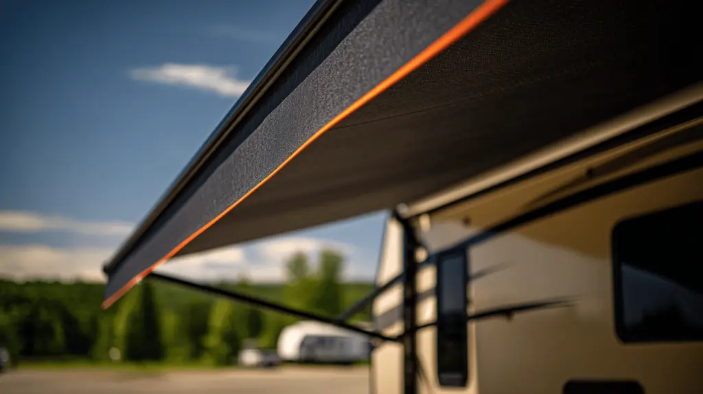 - resistência à água: a maioria dos tecidos para toldo é tratada para ser impermeável, garantindo que a água da chuva não penetre e cause danos.
